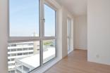 The apartment complex with a total of 116 homes has 9 floors, divided into different types. On the ground floor is the main entrance of the complex with an intercom panel, video intercom, and mailbox. You can reach your own front door via the stairwell and/or elevator and enter the fantastic living space. The living spaces are modern 2-room apartments with independent facilities (approx. 35m2).