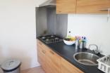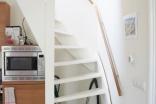 Communal entrance at street level with the private front door of the apartment on the 2nd floor. You enter directly into the living room of approximately 25m2 which is equipped with a modern open kitchen with built-in 4-burner gas hob, fridge with freezer, combi microwave and dishwasher.