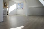De gemeenschappelijke entree bevindt zich op straatniveau. De privé-ingang van het appartement is gelegen op de 2e etage, vanwaar u via een eigen trapopgang de 3e etage bereikt. Hier komt u direct in de karakteristieke woonkamer van ca. 8,51 x 6,90 m, die door de vele Velux-ramen wordt overgoten met natuurlijk licht.