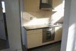 In de woonkamer bevindt zich tevens de open keuken van ca. 2,57 x 1,55 m, voorzien van een inductiekookplaat, moderne afzuigkap, aansluiting voor een wasmachine en een oven. Naast de keuken ligt de nette badkamer van ca. 2,56 x 1,35 m, uitgerust met een douchecabine, toilet, mechanische ventilatie en een wastafel met ombouw.