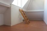 Via de woonkamer bereikt u de slaapkamer van ca. 5,63 x 2,64 m, welke is voorzien van een kleine inbouwkast. Doordat het appartement zich op de bovenste etage van het pand bevindt, heeft het geheel een gezellige en rustieke sfeer. Ideaal om comfortabel te wonen en te genieten van alles wat de stad te bieden heeft.