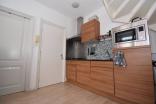 U kom direct binnen in de woonkamer, welke is voorzien van een moderne open keuken met koel-/vries combinatie, gaskookplaat, afzuigkap, combi oven/magnetron en vaatwasser.
