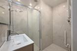 De badkamer is netjes en modern afgewerkt en voorzien van een regendouche met volledige glazen afsluiting, handdoekradiator, wastafel en aansluiting voor de wasmachine. In sommige appartementen bevindt het toilet zich in de badkamer en in andere appartementen is het toilet separaat.
